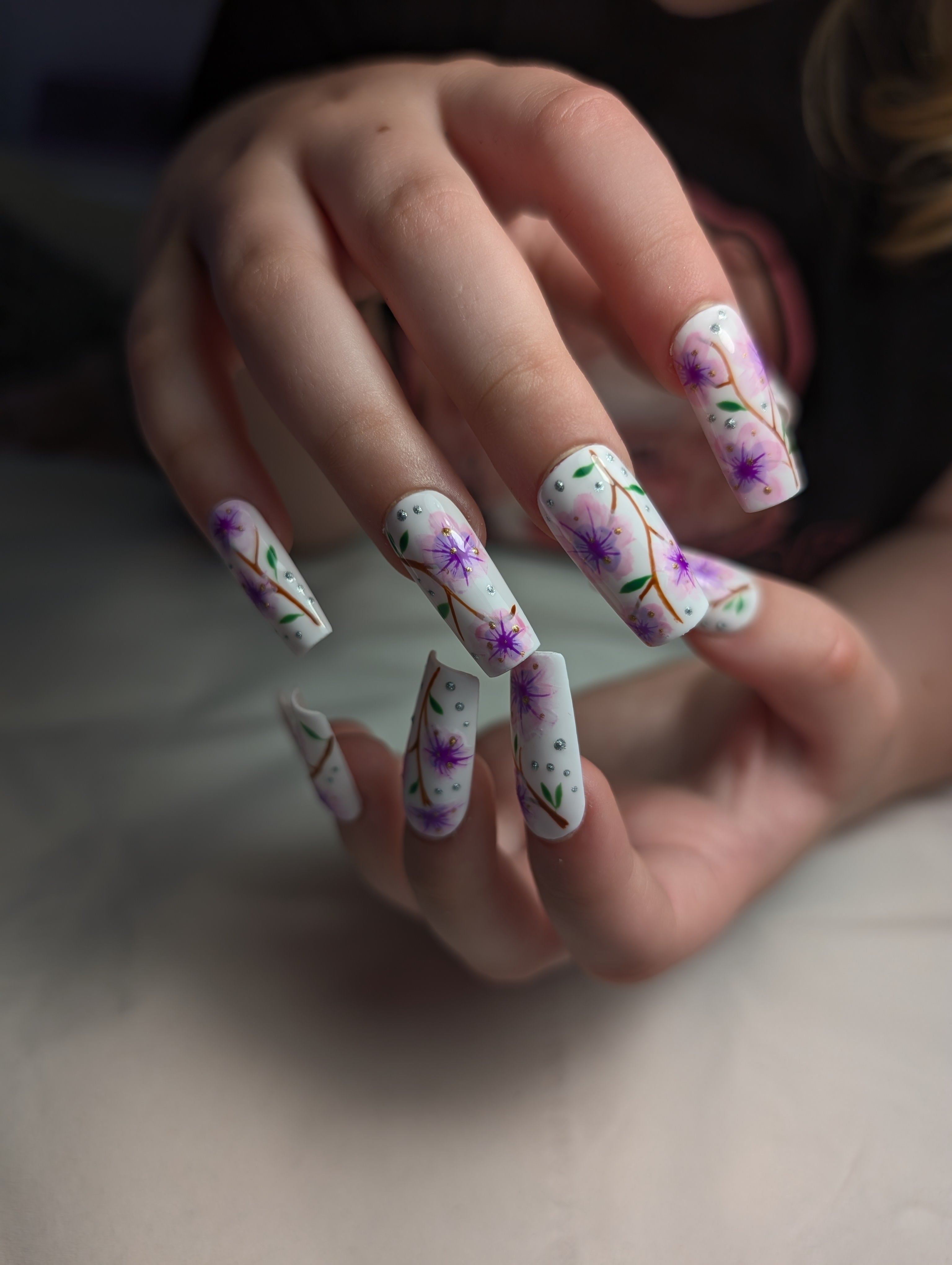 - Intricate hand-painted nail art created with precision